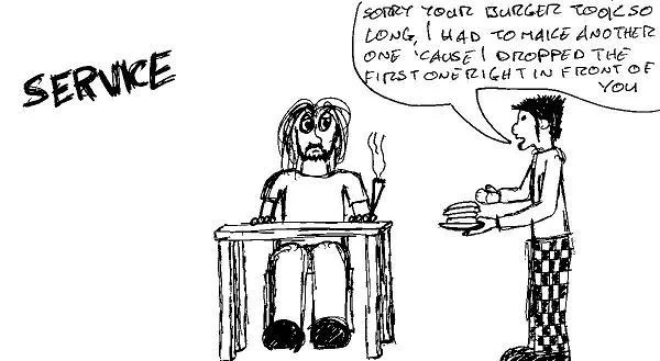 I figure it's time I posted more of my art work. (And I need something quick and easy to shove on this page) Here are some high concept, observational bits I drew a whole bunch of years ago. I like to think my sense of humour has matured some since then (Ron Howard V.O.: It hasn't)